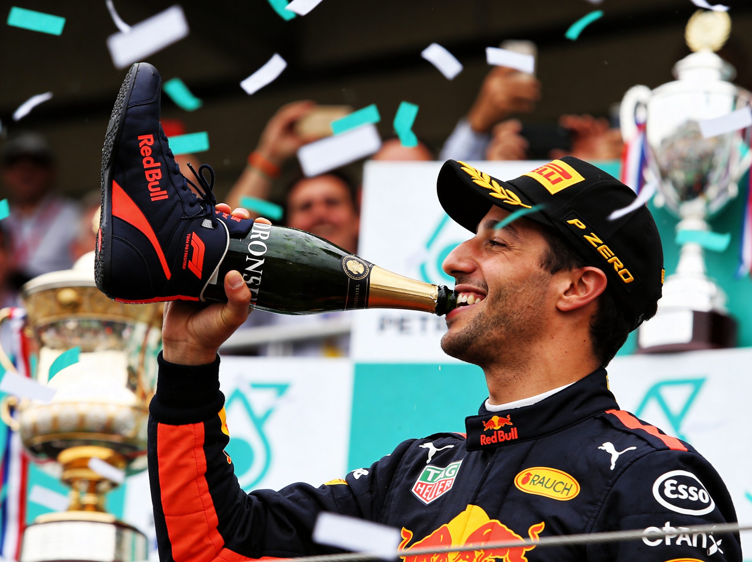 De populaire Australiër, bekend om het drinken uit zijn race-schoen, onthulde in een interview met Ford CEO Jim Farley dat hij de shoey gebruikte als een ongezien drukmiddel. Vooral als hij niet de beste vrienden was met een andere coureur op het podium, kon hij hen ertoe aanzetten om een slok zweetdoorweekte champagne te nemen – en ze konden moeilijk weigeren zonder het publiek tegen zich te krijgen.
