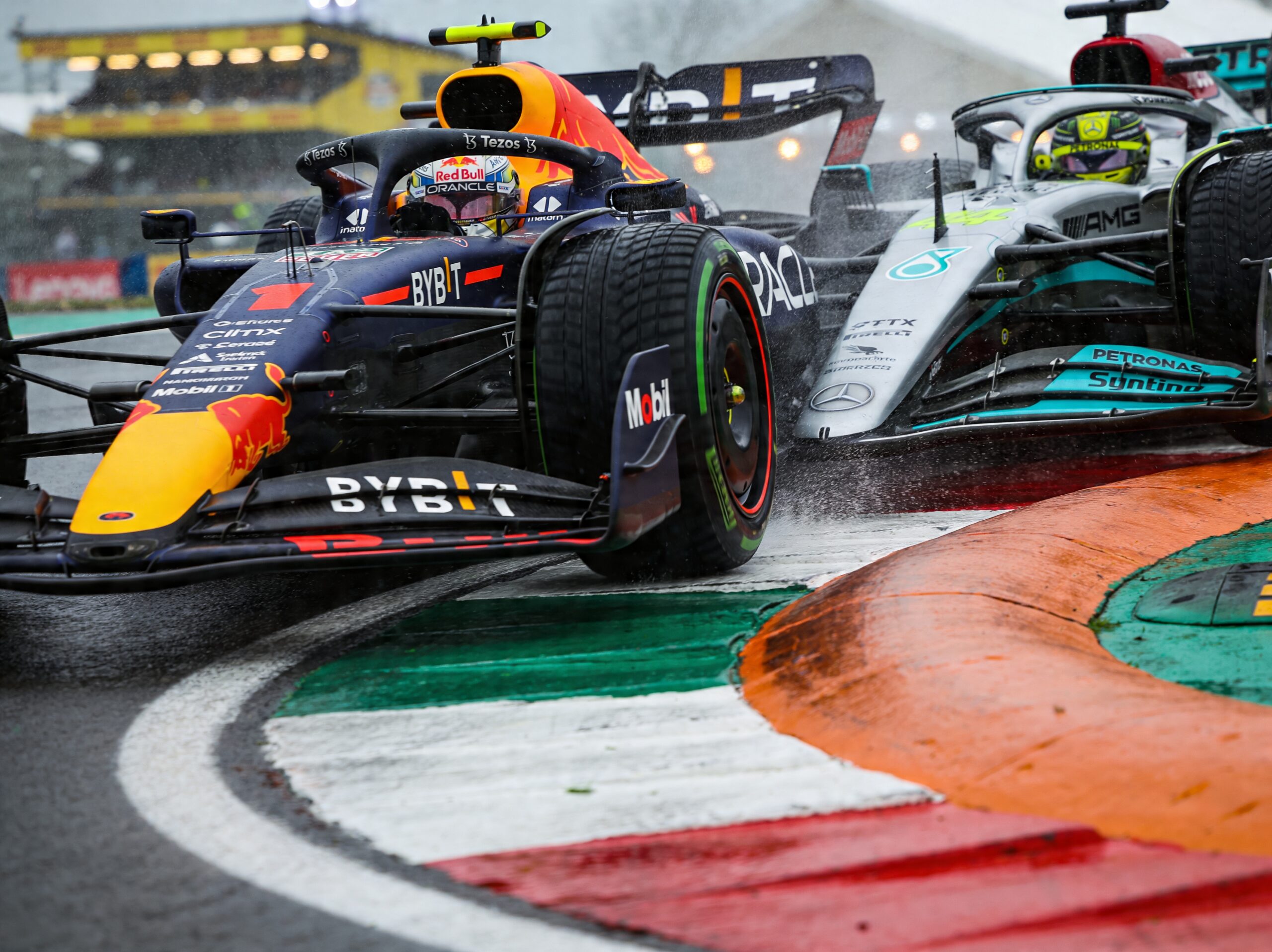 Op een kletsnat Imola zette Max Verstappen een fenomenale start neer vanuit de tweede versnelling, waarmee hij Lewis Hamilton direct voorbij stoomde. In de eerste bocht, Tamburello, kwam het tot contact. Hamilton werd over de kerbstones geduwd, wat zijn voorvleugel beschadigde. De stewards besloten het incident niet te onderzoeken, tot opluchting van Red Bull Racing.